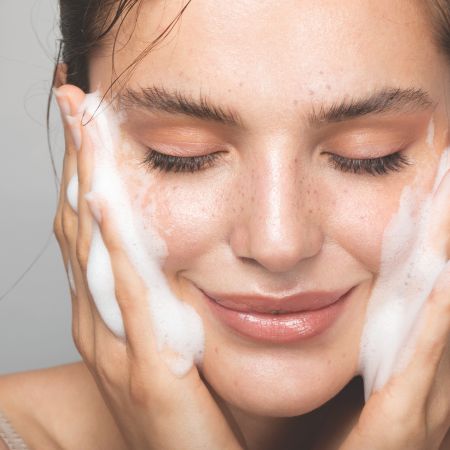 Le matin ou le soir, appliquez l’équivalent de 2 pressions sur le visage et le cou, puis massez délicatement en évitant le contour des yeux. Rincez.